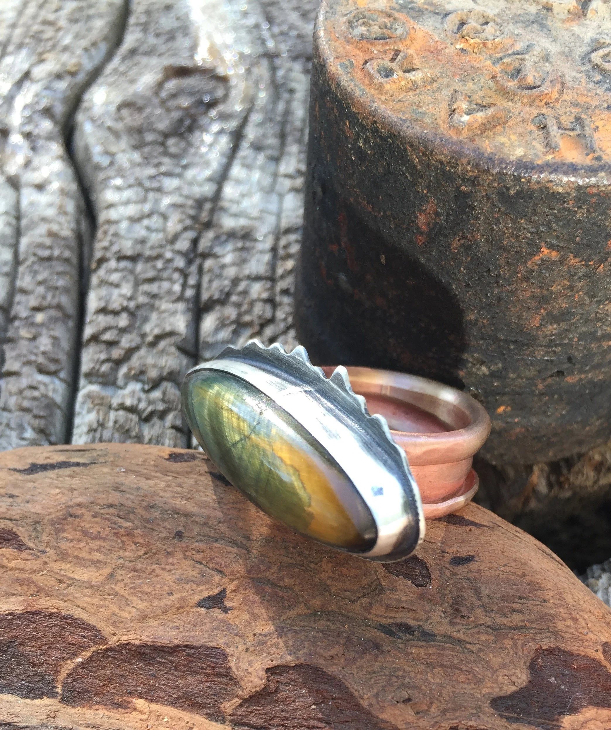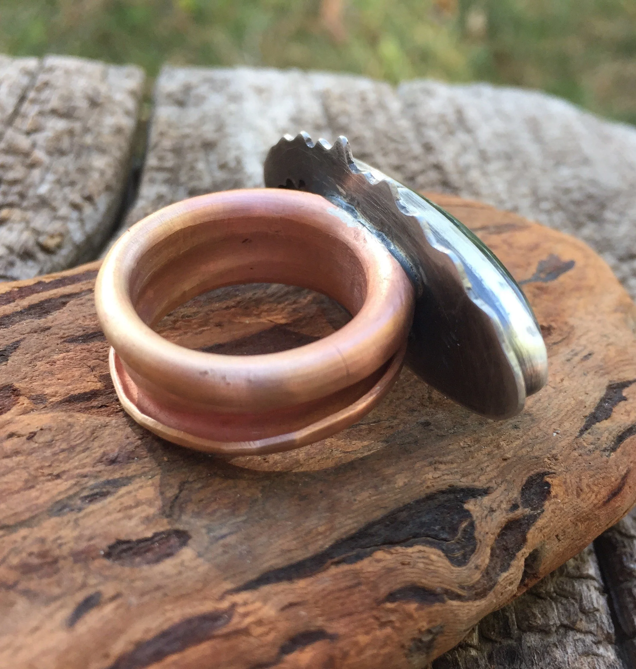 Handcrafted K2 and Druzy Quartz with copper, rings