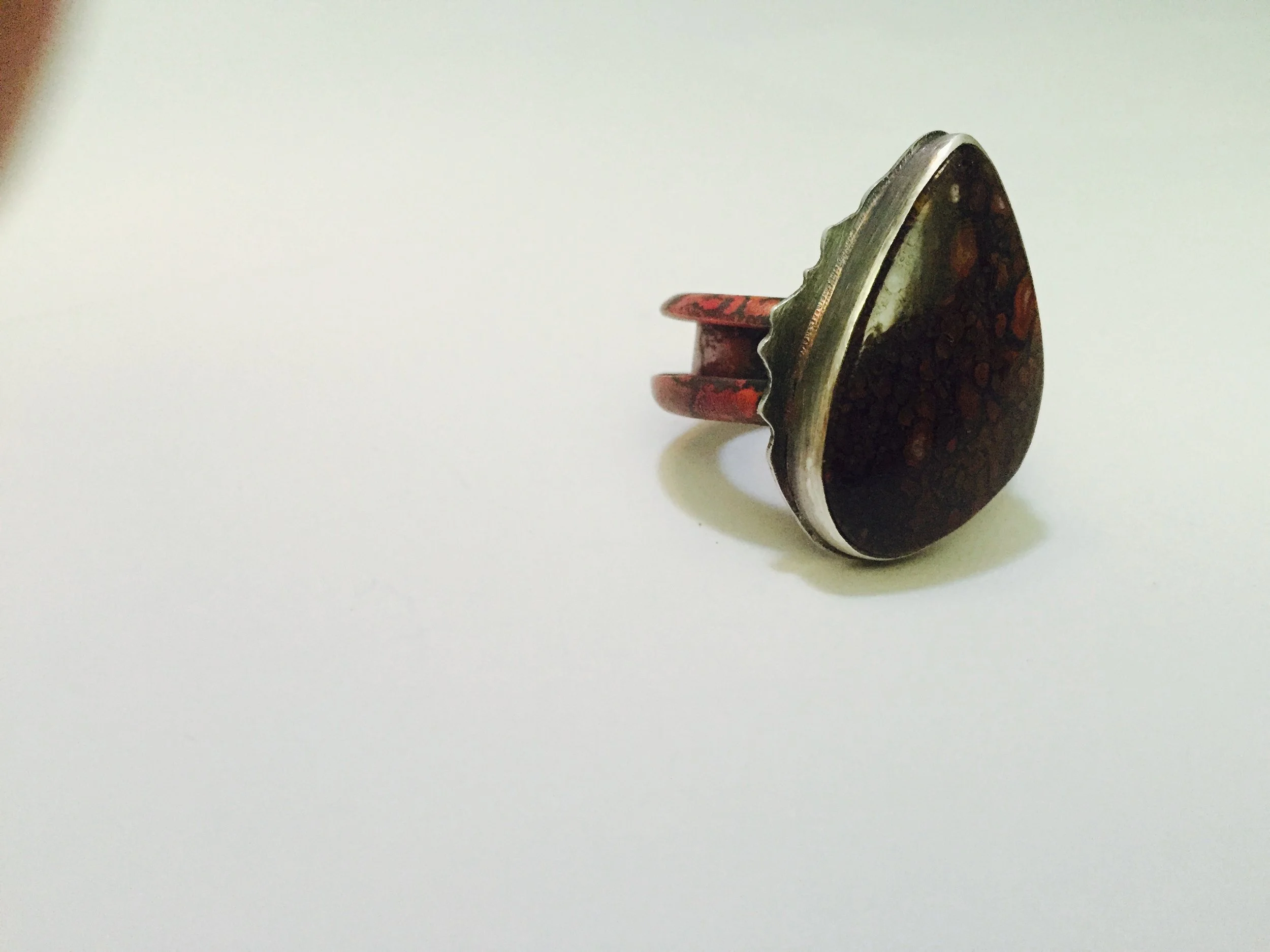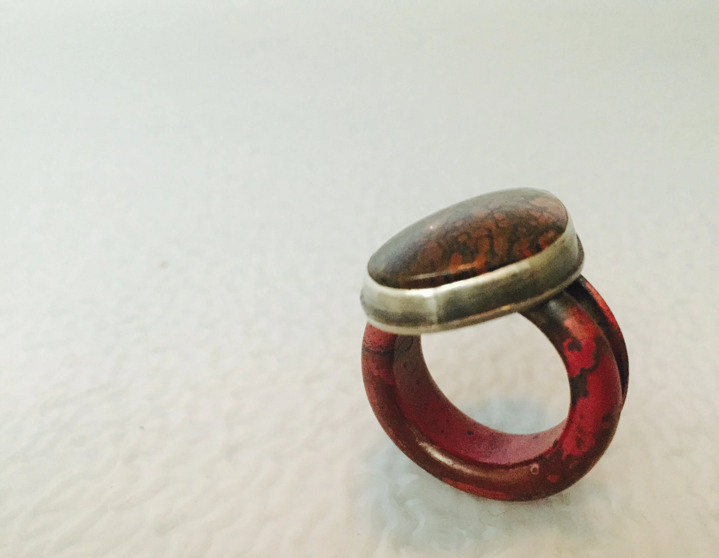 Garnet w/Diamond, gold and silver ring (rebuilt wedding ring)